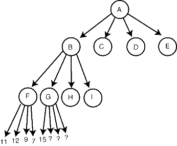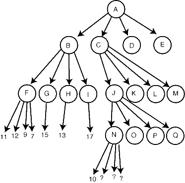 - 假设你用最小-最大搜索(前面讲到的)来搜索下面的树: