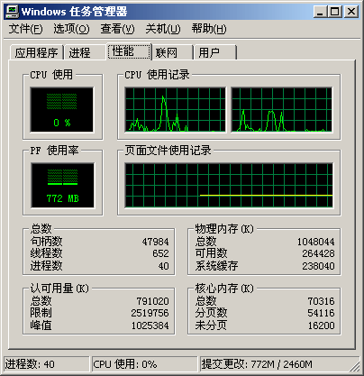 - 如果您的处理器不是超线程的,可打开“任务管理器”窗口(用鼠标右键点击工具栏,在弹出菜单中选择“任务管理器”),点击“性能”页签,“CPU使用记录”框里有几个CPU负荷曲线图,就说明电脑有几核。